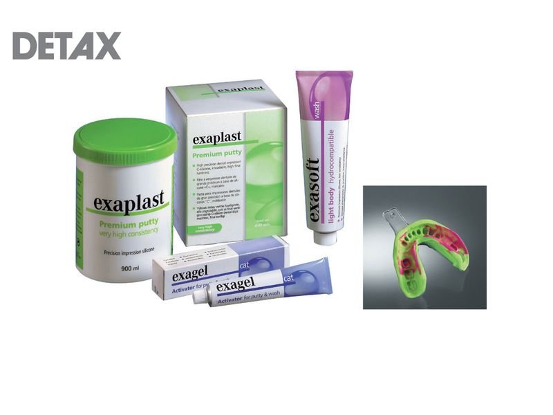 exaplast putty Very high consistency, kneadable, soft smooth initial consistency, ideal final hardness, highly elastic, very dimensionally stable.