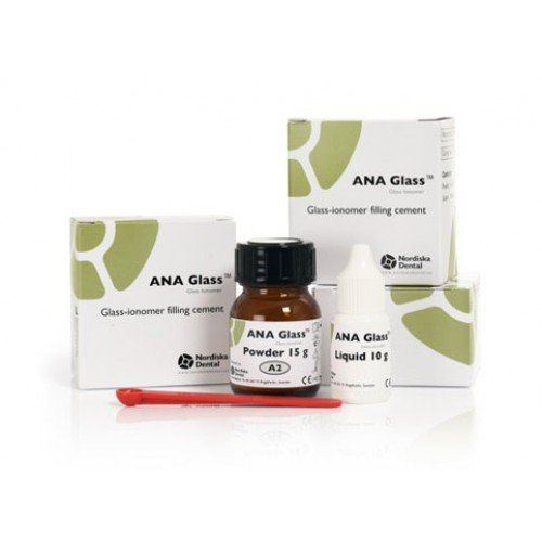 • ANA Glass is the optimal choice for a modern, strong and high quality glass ionomer for universal use. Thanks to the extremely high compressive strength (300 MPa), the perfect condensable structure and the good manageability we are tempted to call it "the white amalgam". It can be modeled immediately without sticking to the instruments and has a perfect marginal adjustment during placement. Fluoride release is high, a good reason to avoid secondary caries. Fluoride release 580 ppm.