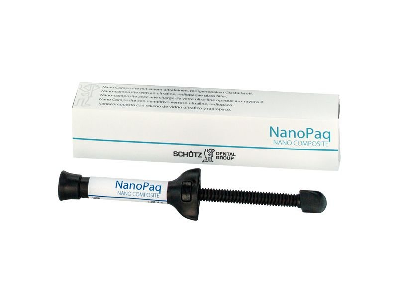 NanoPaq is a light-curing nano composite for adhesive filling therapy with an ultrafine glass filler.